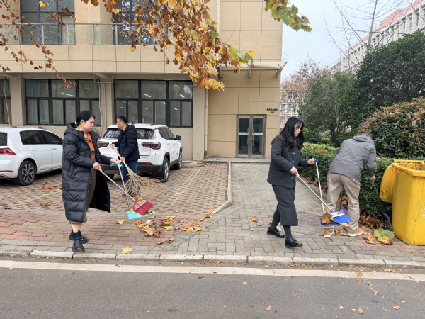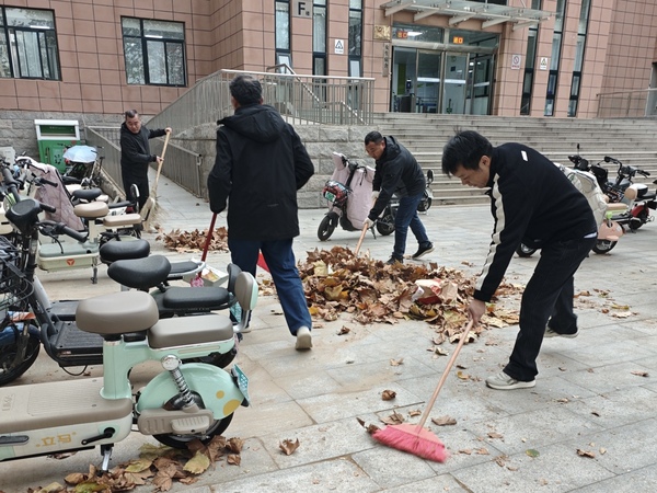 秋季气温持续走低,校园内树木落叶进入高峰期,为营造整洁优美的环境,切实发挥基层党组织的战斗堡垒作用和党员的先锋模范作用,后勤服务中心党总支组织全体职工开展了落叶清扫志愿服务活动。