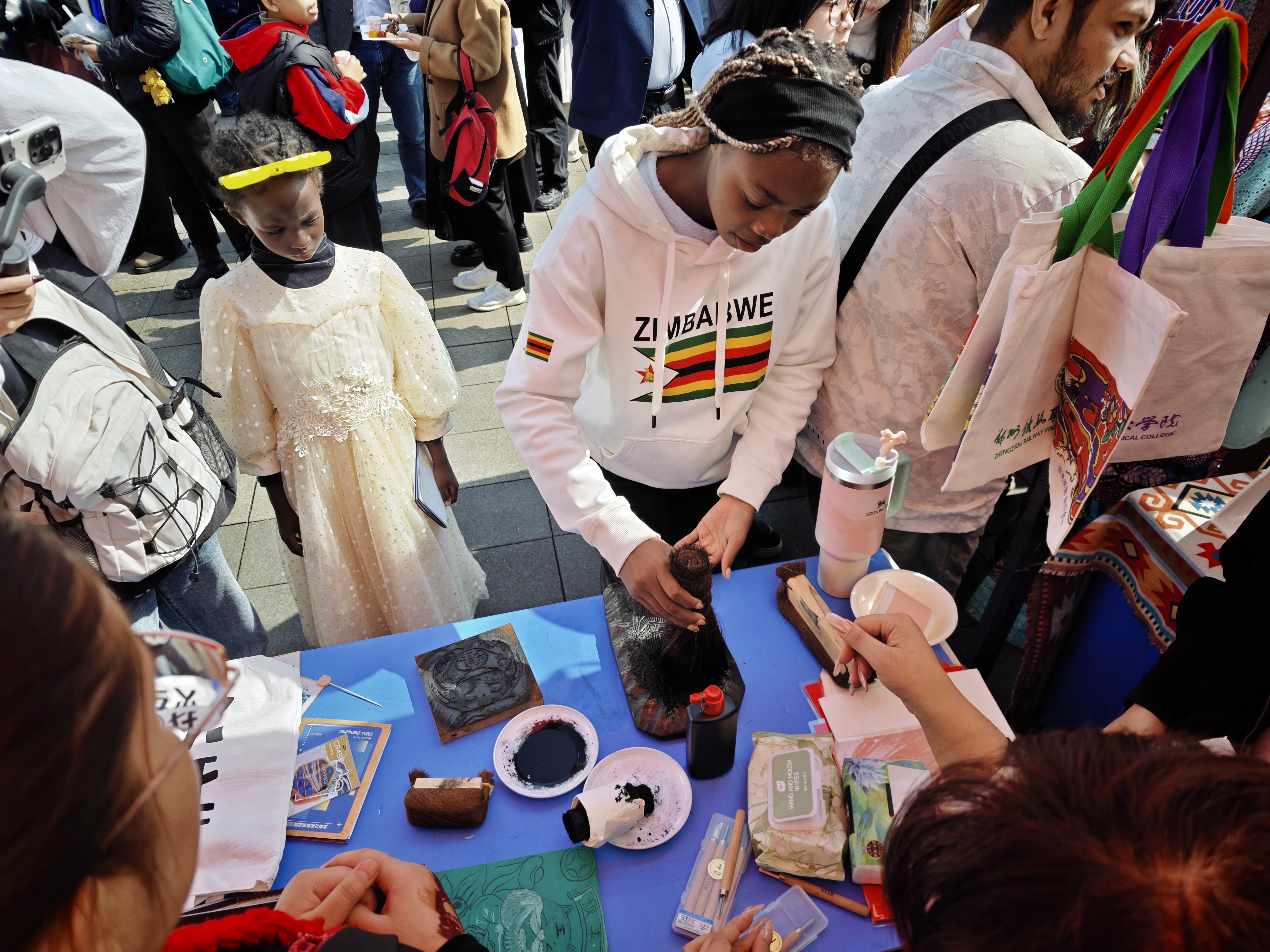 在非遗展区,我校留学生化身“非遗文化传播者”,为各国师生带来了铝编和朱仙镇木版年画展示体验。参观者为铝编摆件的精巧造型惊叹,反复询问 “如何才能编出这样的造型”;也有外国师生拿着自己拓印的年画,兴奋地向留学生请教年画背后的故事。这种以非遗为载体的交流,增强了各国师生对中国文化的认知,也迅速拉进来彼此的距离。经文化节组织方评选,我校荣获五洲文化最佳呈现奖。