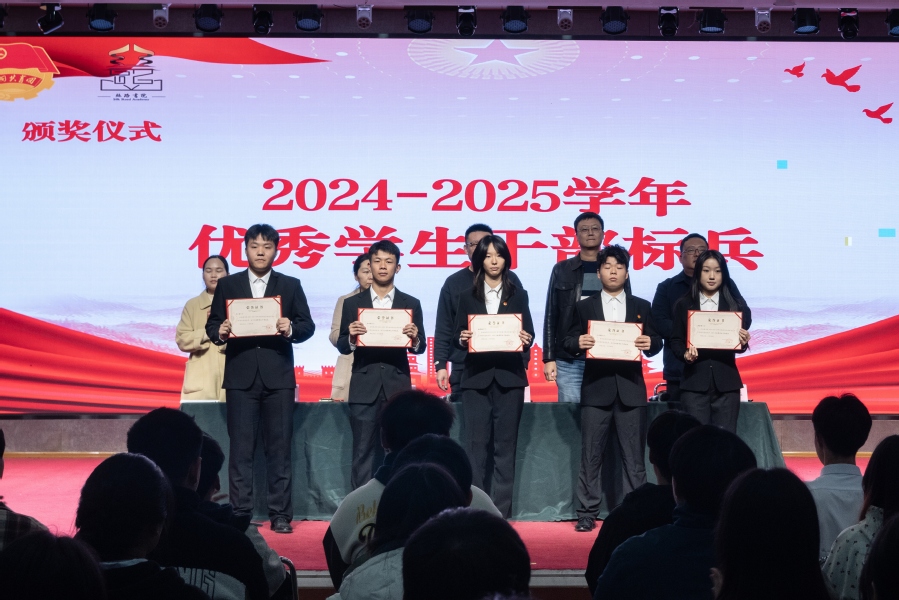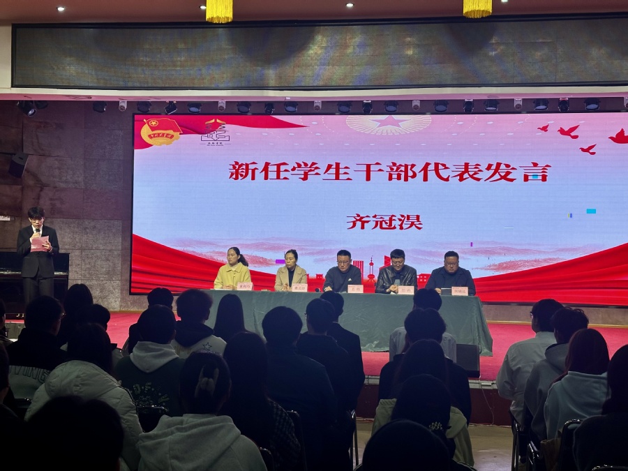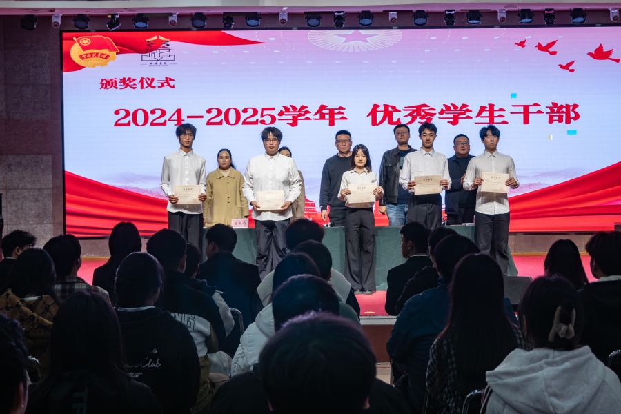 仪式在激昂的《中国共产主义青年团团歌》中拉开帷幕。书院党总支副书记任冉宣读《表彰决定》,并寄语他们要珍惜荣誉,再接再厉,在今后的学习与工作中继续发挥模范带头作用。随后,与会老师为2024-2025学年优秀干事、优秀学生干部、优秀学生干部标兵的学生代表颁发荣誉证书。接着培训班正式开班,办公室主任橐云婷宣读《培训计划》、分团委副书记索利巧宣读《学习制度》。23级优秀学生干部代表潘勃睿、24级新任学生干部代表齐冠淏先后作表态发言,总结过去、展望未来。