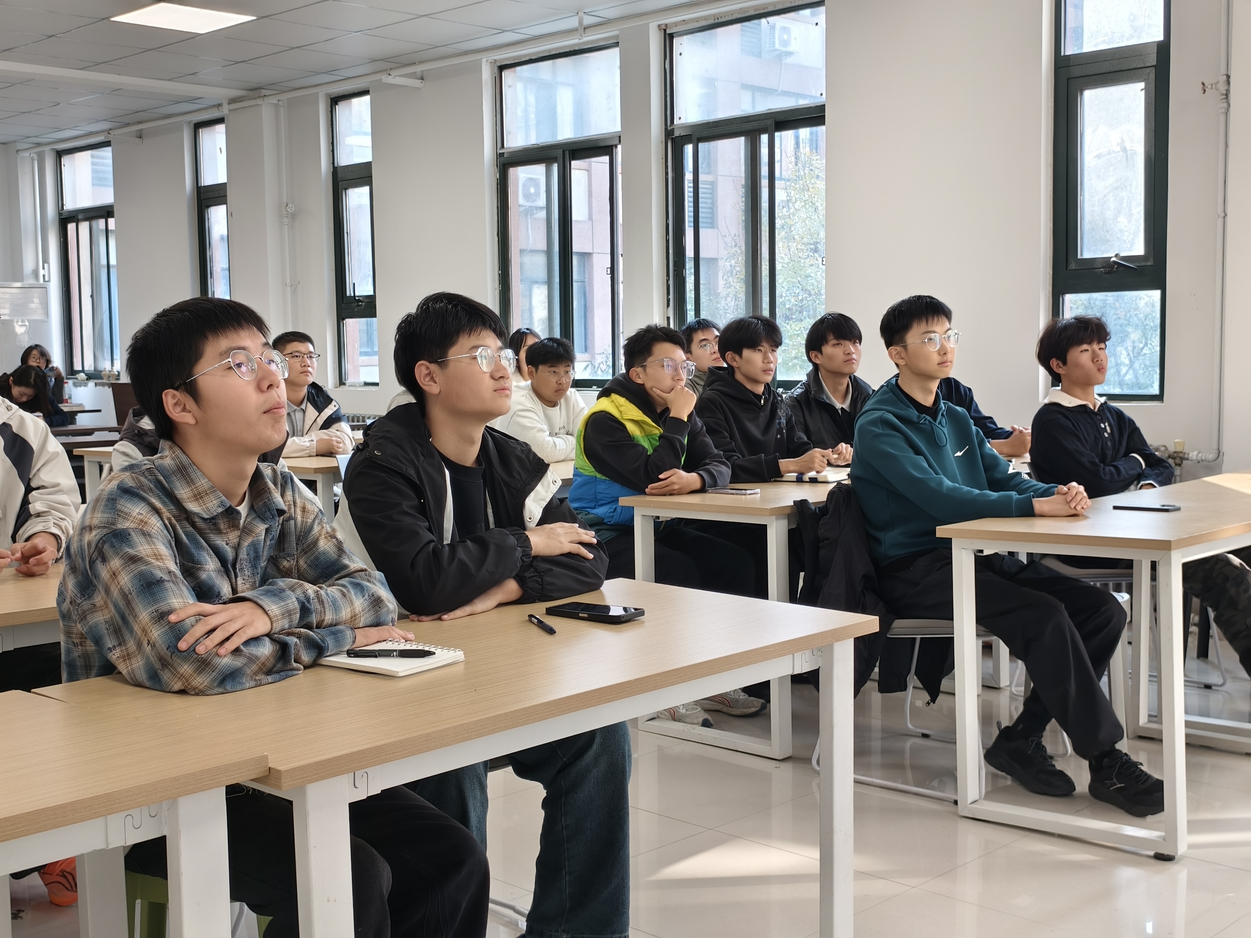 讲座中,朱冰结合自身学习、竞赛、学生工作及志愿服务等方面的工作经历,分享了时间管理技巧、赛事心态调整方法,并针对新生常见的适应问题提出了具体建议。现场同学认真聆听、积极记录,围绕“高效备考”“竞赛选择”等话题踊跃提问,与朱冰展开互动,现场气氛热烈融洽。不少同学表示收获颇丰,进一步明确了学习与发展方向。