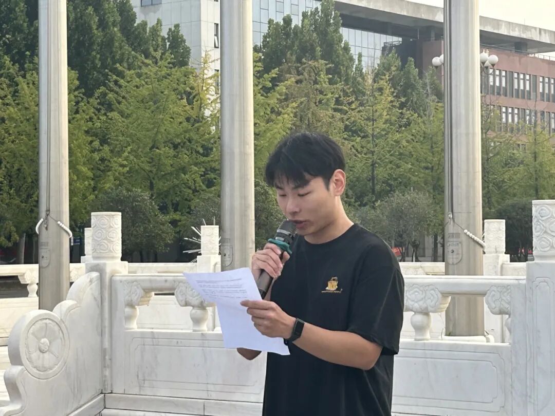 礼毕后,学生代表进行国旗下演讲,他向新时代青年发出号召:我们肩负着历史的接力棒,必须以“仰望星空”的志向锚定人生航向,以“脚踏实地”的行动夯实本领基石,以“敢为人先”的锐气点燃创新引擎,将个人理想融入国家发展,用奋斗和担当在民族复兴的征程中书写无愧于时代的青春华章。