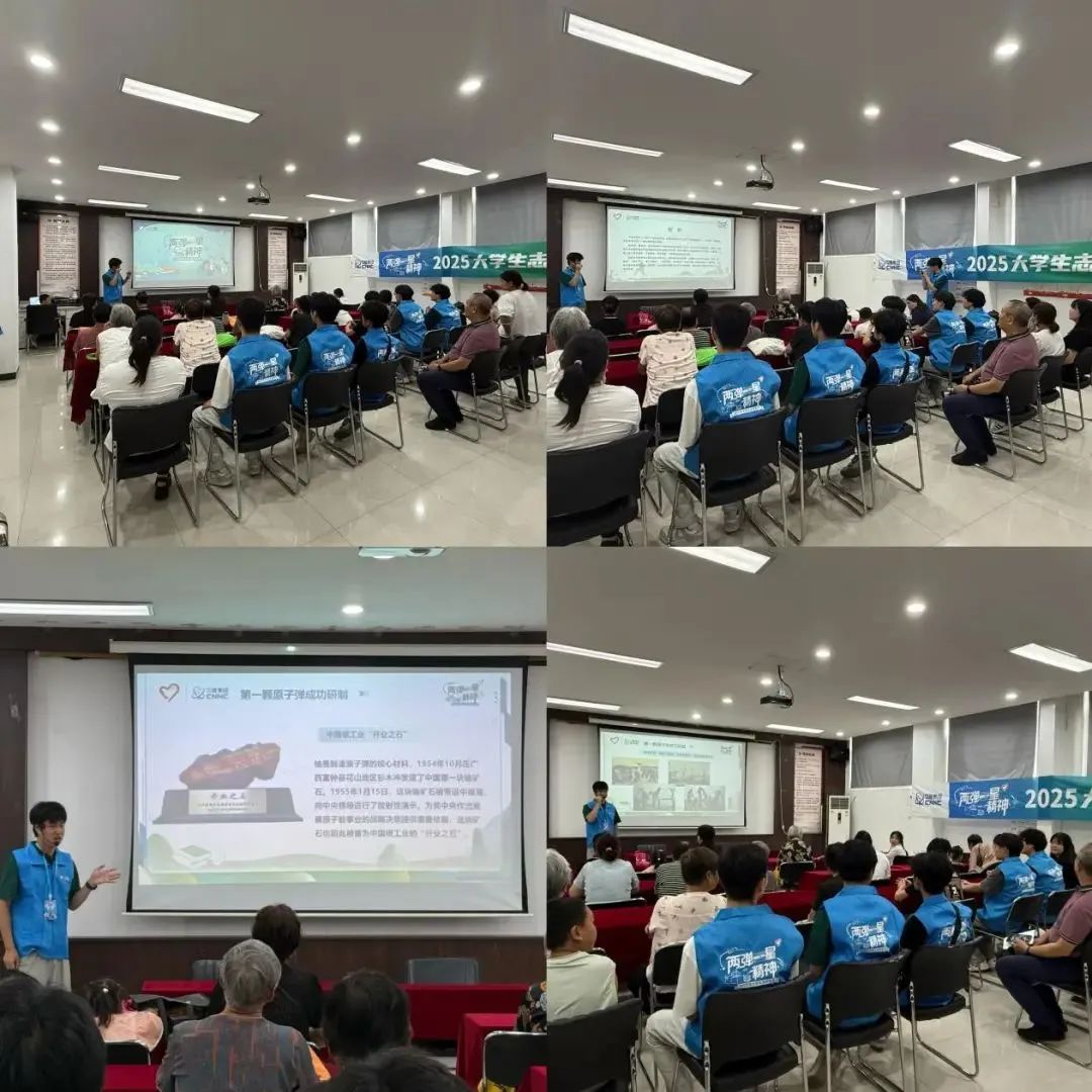 台下的居民们屏息凝神:老人的手指无意识地摩挲着扶手,年轻人微微前倾着身子,连趴在妈妈膝头的孩童都忘了吵闹。当讲到 “成功爆炸”四个字时,银幕上的蘑菇云仿佛穿透了时空,在活动室里投下一片无声的震撼——原来那些课本里的 “辉煌时刻”,都是用无数个平凡日夜的坚守垒起来的。