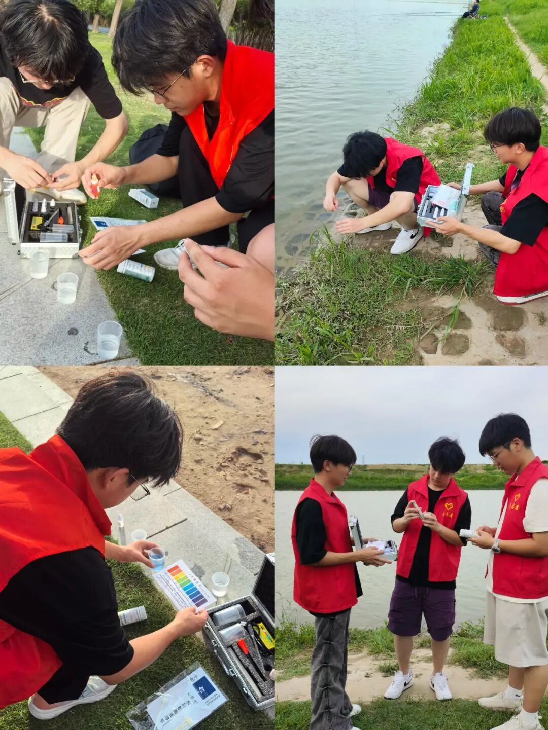 净滩告一段落,队员们又取出检测工具,在河畔不同点位忙碌起来。采样瓶沉入水中,盛满带着水草气息的河水;试管中滴入试剂,看液体在摇晃中变幻色彩:酸碱度试纸晕开橙红,硝酸盐检测液泛起浅紫…… 每一组数据都被认真记录在表格上,如同一串密码,悄悄诉说着河流的健康状况。“这组数据超标了,可能和周边生活污水有关。”队员们轻声讨论,手中的记录笔仿佛变成手术刀,精准剖析着河流的“身体”,为后续保护方案埋下科学的伏笔。