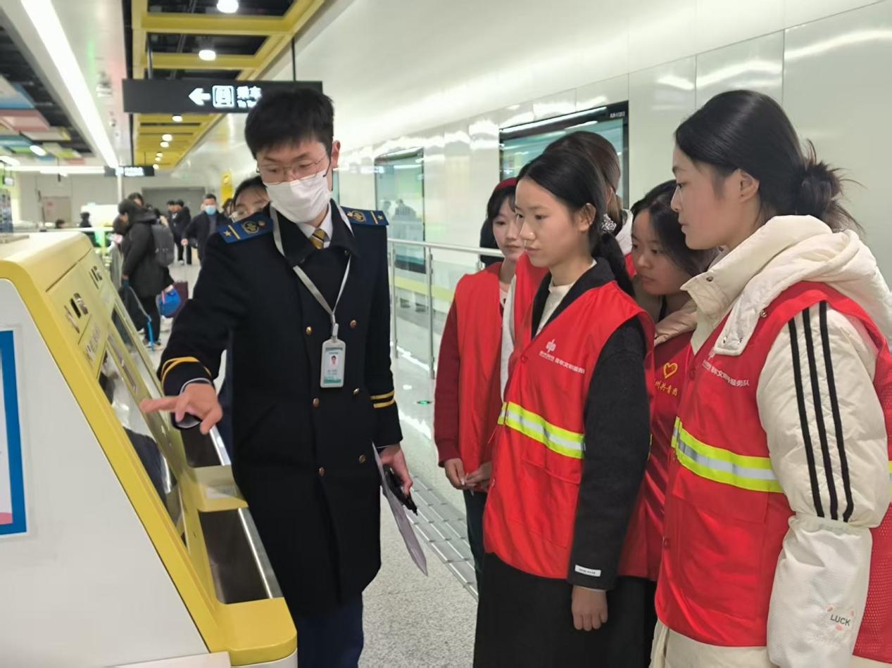 为加深同学们对地铁客运服务的理解,提升专业认知与实践能力,11月21日,大学生“复兴启航”高铁服务协会组织学生前往郑州地铁8号线,开展了一次富有意义的认识性志愿服务活动。本次活动获得各方大力支持,为学生搭建了理论与现实衔接的学习平台。