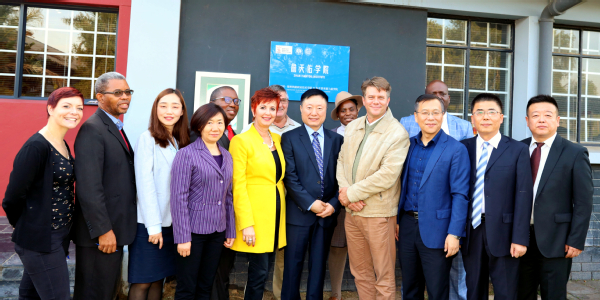 会后,双方在东开普米兰德兹学院办公区举行了“詹天佑学院”揭牌仪式。