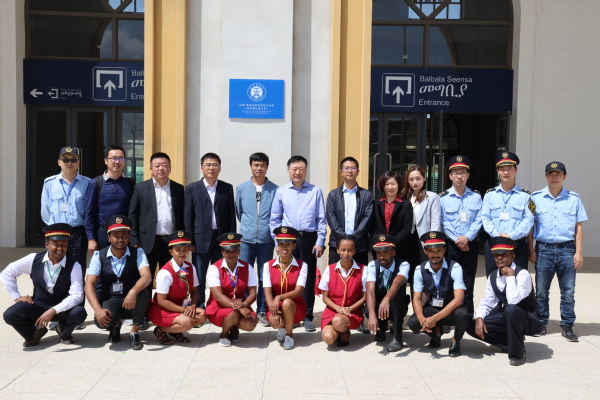6月5日,代表团一行在联营体公司负责人的陪同下参观了亚吉铁路阿达玛车站(Adama Railway Station)及员工培训中心。孔凡士重点观摩了相关教学设施,并与车站中外方工作人员进行了交谈。双方负责人就本地员工培训体系构建等问题进行了深入磋商,随后在亚吉铁路阿达玛培训中心举行了“郑州铁路职业技术学院埃塞俄比亚分校”揭牌仪式。随后,代表团一行参观了由中国中铁二局集团承建并运营亚的斯亚贝巴轻轨调度中心。