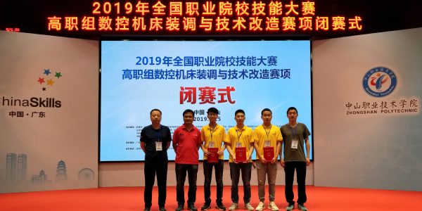 6月12日至15日,2019年全国职业院校技能大赛高职组数控机床装调与技术改造赛项在中山职业技术学院开赛。比赛共吸引全国28个省、市、自治区的52所院校代表队、156名选手参加。经过四天激烈角逐,由我校机电工程学院张勇、王文超老师指导的铁道机修17A1王嘉鑫、铁道机修17A1彭虎、电气自动化17A2张格非同学组成的参赛队荣获全国三等奖。