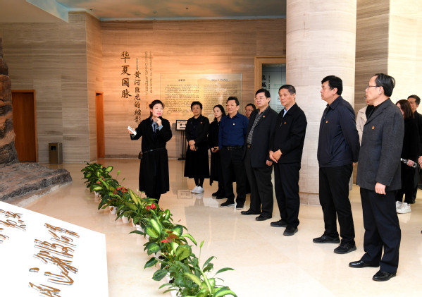 中心组成员依次参观了序厅、流域地理、民族摇篮、千秋治河、治河新篇、和谐之路六个展厅。生动的纪实照片、丰富的历史文献、珍贵的文物标本在模型、录像、雕塑、幻影动画的展示下,全面呈现了黄河流域的地理、地貌、气候等自然概况,充分展现出灿烂的黄河文化以及历代水旱灾害、河患治理、水土保持、水资源开发利用、治理开发的远景规划。通过了解黄河流域文明发展、生态保护等历史变迁,中心组成员认识到要在敬仰与图强中传承历史,在担当与奋斗中开创未来,传承红色基因,弘扬奋斗精神,切实增强政治责任感和历史使命感。通过重温历代治河名家的事迹及人民群众同黄河水患斗争英勇事迹,大家深刻体会到开展好调查研究,发扬好优良传统,学习好身边典型的现实意义,激励着大家进一步锤炼政治品格,坚定理想信念,增强贯彻落实习近平新时代中国特色社会主义思想的自觉性和坚定性。