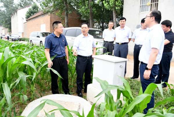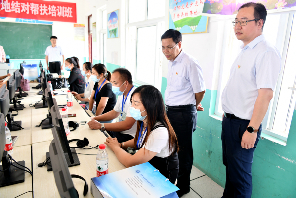 许琰一行先后来到大岗村唐学元希望小学、田间农水电项目、黎庄村卫生室、校地结对帮扶培训学校等进行实地考察,详细了解学校扶贫项目带贫情况、“校地结对帮扶”工作开展成效。每到一处,许琰都深入现场仔细察看扶贫工作落实情况。在唐学元希望小学,许琰走进学校帮扶的学生餐厅、教室、图书室,对学生就餐、学习、生活环境改善情况进行察看,并表示今后将继续提供帮助,改善校园环境,确保学生吃的放心、学的舒心、玩的开心。在大岗村田间地头,许琰实地调研学校帮扶的农水电项目,详细了解项目运行情况及给村民带来的经济效益,并嘱托要严格落实用电安全、加强机井周边防护、确保生命财产不受损失。在学校援建的黎庄村卫生室,许琰与帮扶对象、卫生室医生杨雷阳夫妇亲切交谈,了解卫生室运营情况,鼓励他们要相信党和政府,坚定脱贫致富信念,对美好生活充满信心。在校地结对帮扶培训学校,许琰走进我校举办的软件培训班,与我校人工智能学院老师和培训学员深入交流,了解培训开展情况。
