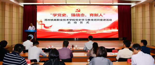 副校长焦宏涛宣读了《郑州铁路职业技术学院“学党史、强信念、育新人”党史学习教育巡回宣讲活动实施方案》。