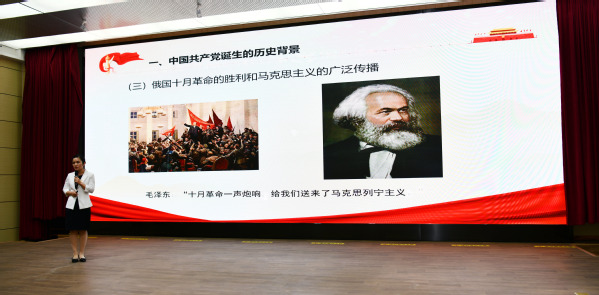 启动仪式后,进行了首次党史学习教育宣讲。宣讲员朱倩倩、常驰、王杏、智晶晶、程轶博分别围绕中国共产党的诞生、遵义会议精美油画、国歌背后的故事、三大战役、国旗的含义等师生们熟知的党史故事,动情讲述、深情演绎,通过图文并茂、音频视频等形式,拉近了党史与师生的关系和距离,增强了党史对师生的吸引力和感染力。既讲大道理,又还原实景,增强了党史宣传教育的温度、厚度和深度,在轻松愉快的氛围中给学生们上了一堂生动的党史教育课。
