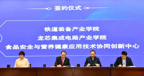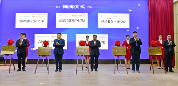 会议宣读了《郑州局集团公司关于进一步推进与郑州铁路职业技术学院产教融合、校企合作工作的指导意见》《关于调整常务副理事长、副理事长、常务理事单位的通知》《关于调整常务副理事长、副理事长、常务理事、秘书长名单的通知》等文件,举行了郑州铁路职业技术学院与中国铁路郑州局集团有限公司、龙芯中科技术股份有限公司、郑州捷安高科股份有限公司等多家企业共建铁道装备产业学院、龙芯集成电路产业学院等13个产业学院,铁路交通应用技术协同创新中心等2个协同创新中心的签约仪式及揭牌仪式。最后,举行了杭州万维镜像科技有限公司、河南欧亚智能科技有限公司分别向郑州铁路职业技术学院捐赠500万元、20万元的企业捐赠仪式。