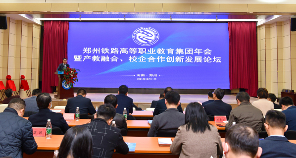 12月11日上午,郑州铁路高等职业教育集团2021年年会暨产教融合、校企合作创新发展论坛在我校成功召开。河南省教育厅党组成员、副厅长陈垠亭,中国铁路郑州局集团有限公司副总经理陆彦彬,郑州地铁集团有限公司常务副总经理袁聚亮,河南省教育厅职成处处长秦剑臣,河南交通职业技术学院校长刘志伟,中国铁路郑州局集团有限公司职培部部长代新年出席本次会议,党委书记许琰、校长马玉霞、副校长董黎生、副校长倪居、相关职能部门和二级学院领导、各产业学院45家合作单位及省内外兄弟院校领导参加会议。