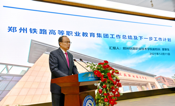 董黎生作《郑州铁路高等职业教育集团2021年度工作总结及下一步工作计划》报告。董黎生指出,集团一直积极探索职业教育集团化办学的共建共享之路,不断深化教育教学改革、优化铁路技术技能人才培养体系、提升服务铁路交通产业能力,下一步集团将进一步立足我国高铁产业,服务国家“交通强国”战略与“一带一路”倡议,努力推进郑州铁路高等职业教育集团发展再上新台阶。
